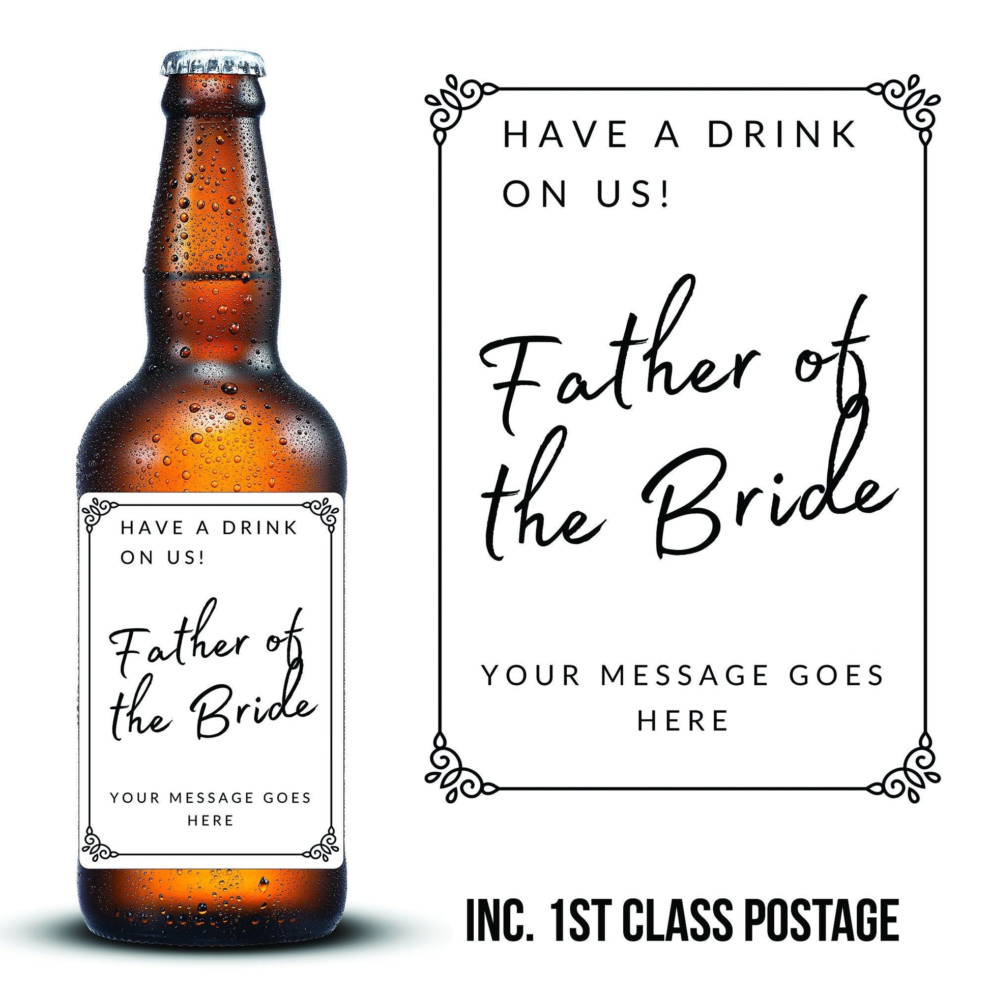 Beer bottle label sticker for Father of the Bride gift personalised, Wedding thank you gift for dad or stepdad for the big day