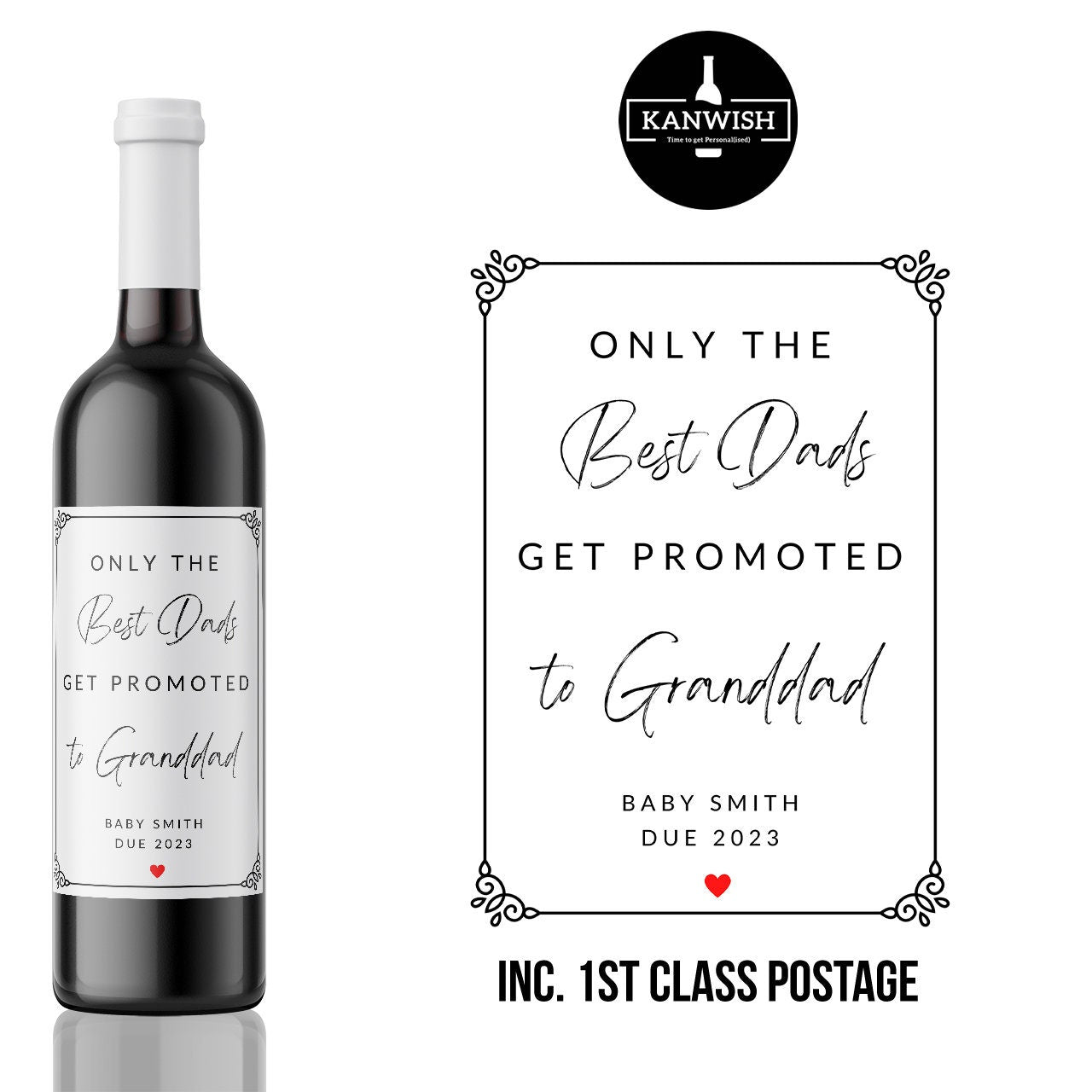 Best Dads get Promoted to granddad custom wine label sticker | Baby Announcement | Pregnancy Announcement | New Baby Announcement