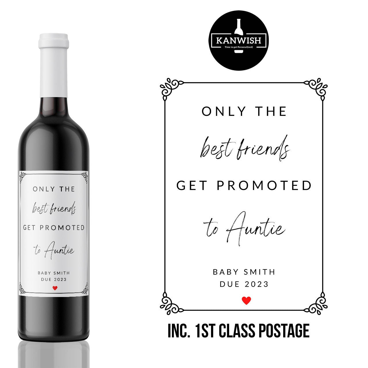 Best Friends get Promoted to Auntie wine label | Baby Announcement | Aunt Pregnancy Announcement | New Baby Announcement, UK seller