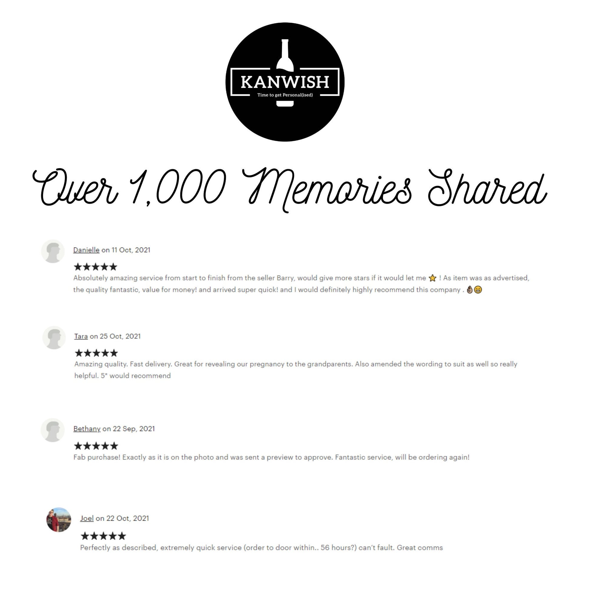 Best paired with the celebrant’s favourite wine, of course, this wine label features a beautiful full photo and a personal message. Printed on splashproof vinyl, the images will last a long time. Plus, the wine bottle and customized label can be reused as a memento display or a flower vase.