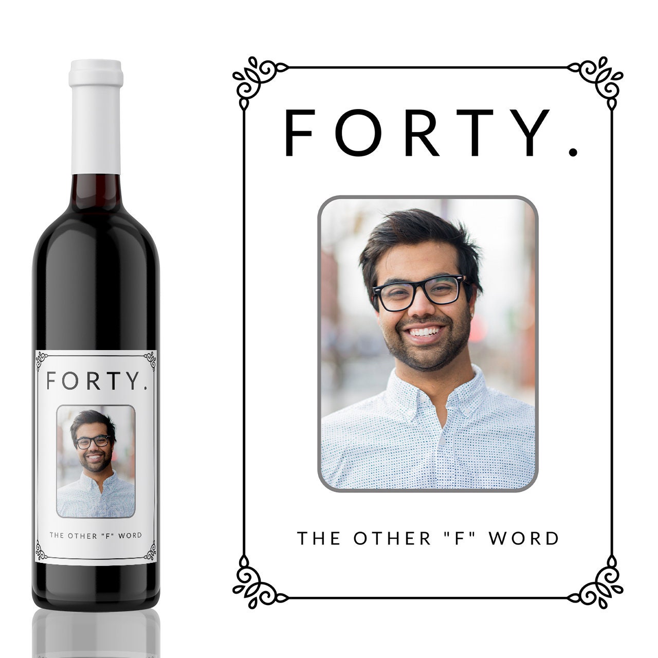 Forty The Other F Word photo Wine Label, photo Forty Wine Label, Photo Funny 40th birthday gift, funny 40th personal wine label