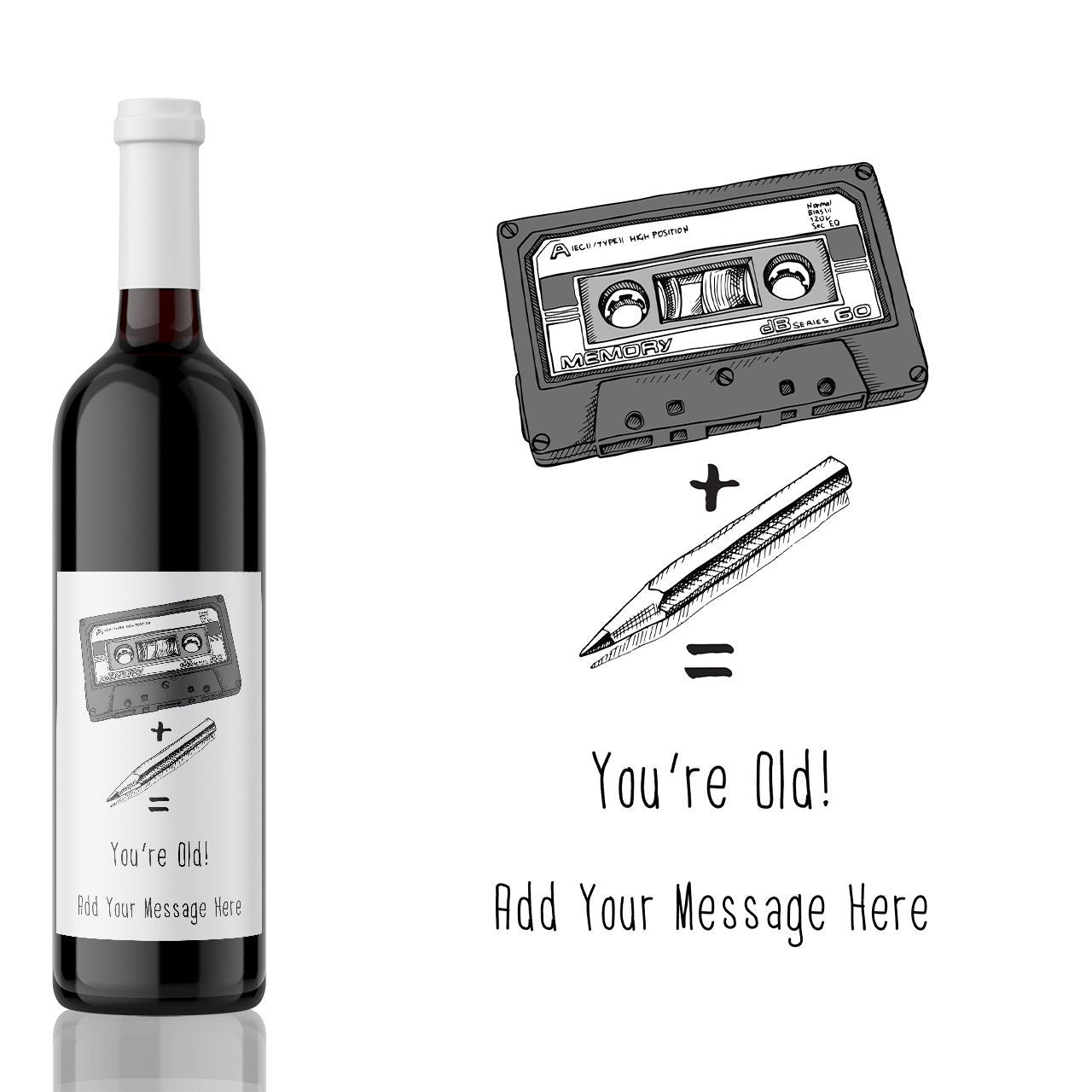 Gen X funny Wine Label | Boomer funny Wine Label | Funny 40th birthday gift | funny 50th personal wine label | Tape and pencil rewind | GenY