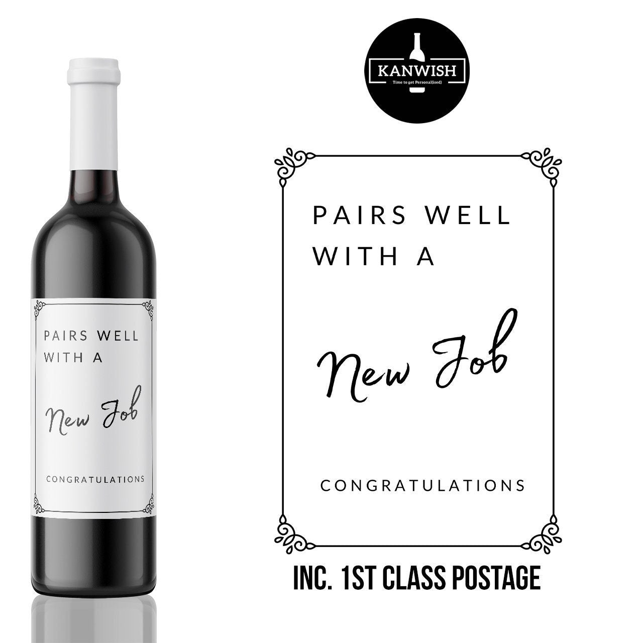 Pairs well with a new job Wine Label sticker - Funny Personalised Gift, Leaving Work Gift, For Work Friend, Colleague, Label, Sticker