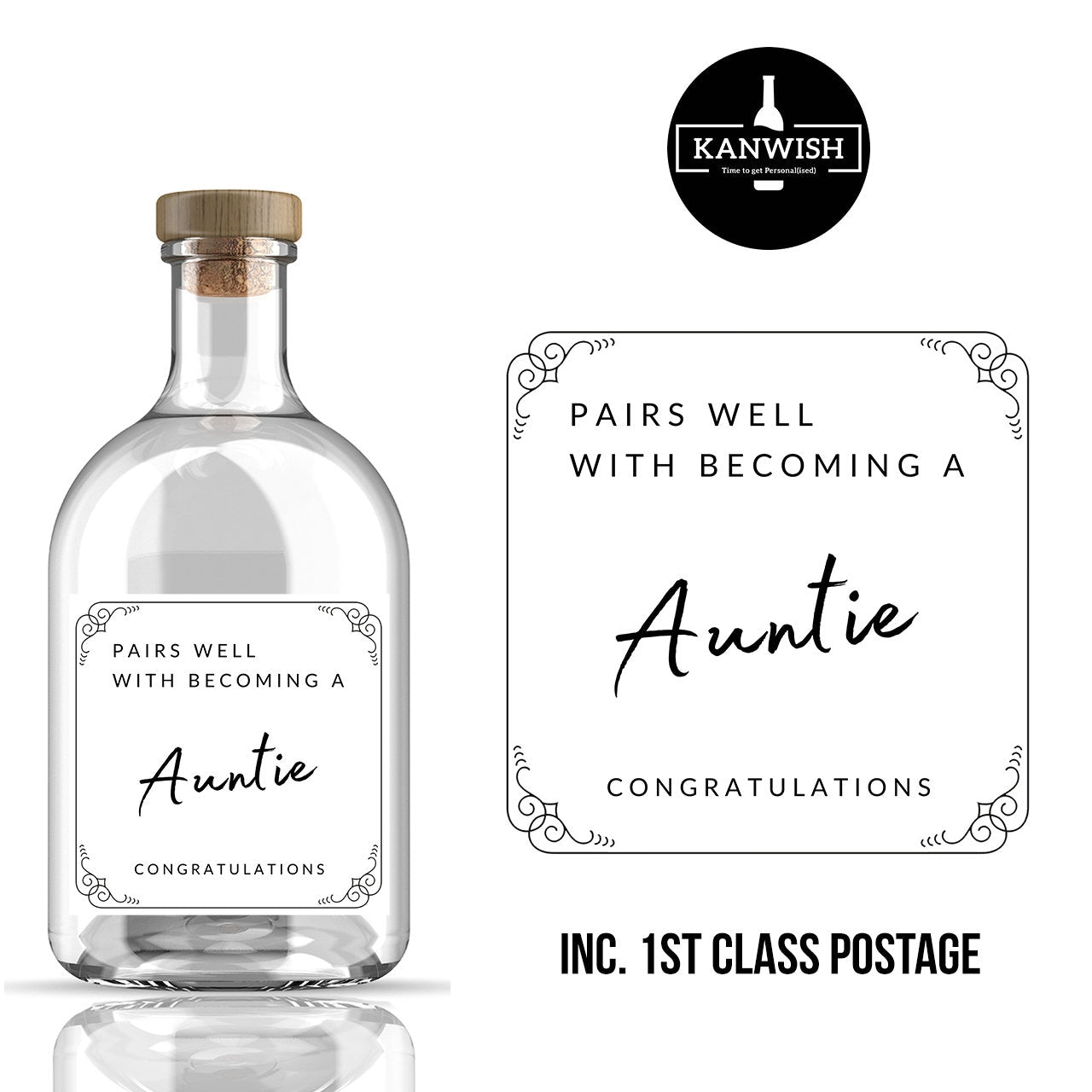 Pairs well with Aunt custom GIN Label | Gin label gift | personalised gin label | Auntie gift | Becoming and Auntie | Aunt fun gift