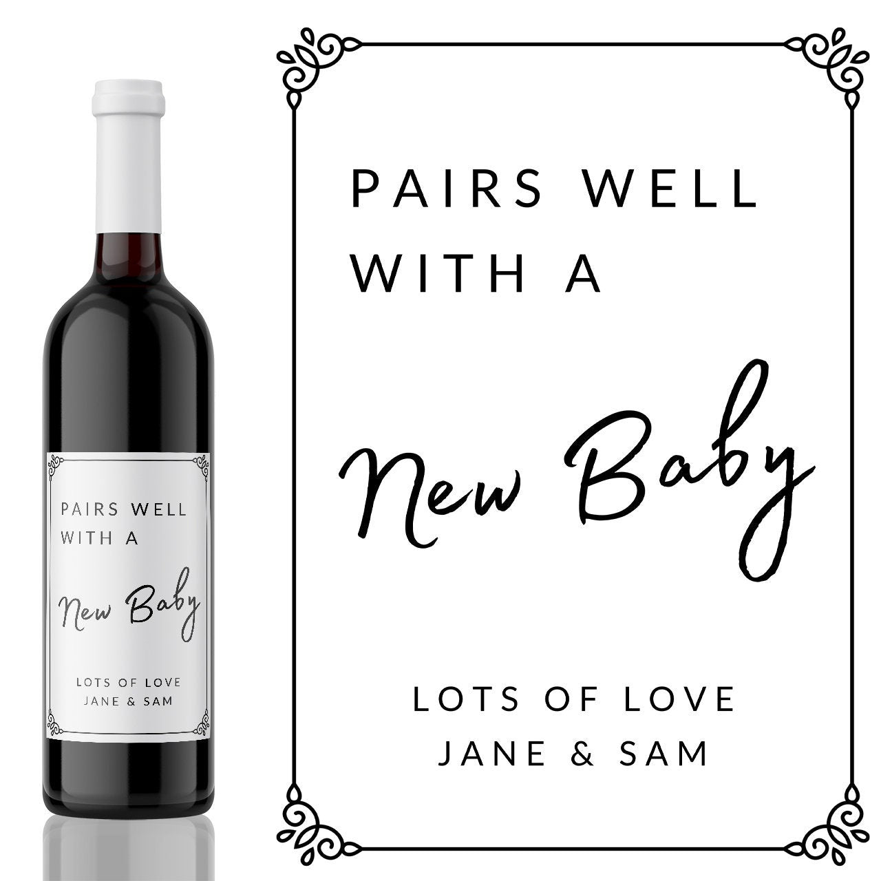 Pairs well with New Baby Wine Label - add you own custom message, godparent gift, grandparent gift, new parents gift from Kanwish Designs