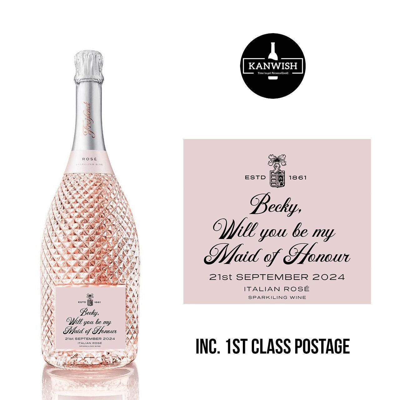Personalised maid of honour Prosecco Bottle Label sticker, engagement announcement , bridesmaid gift, custom prosecco bottle label