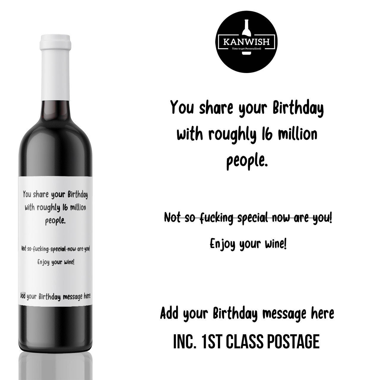 sarky humorous, rude and Edgy custom Wine Label sticker for Birthday | wine gift for brother, sister or best friend | sarcastic wine label